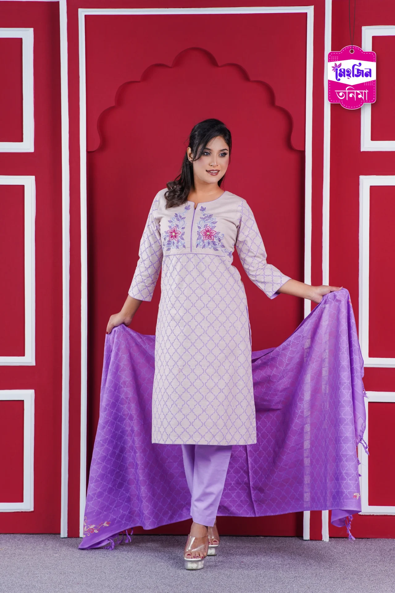 | ম্যাট্যারিয়ালস | জামাঃ কটন, প্যান্টঃ কটন, ওড়নাঃ কটন |